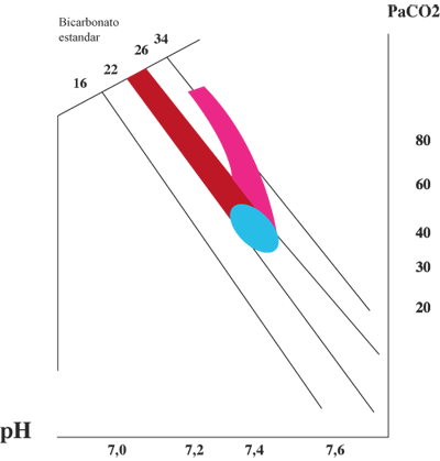 de una acidosis respiratoria aguda. Los límites de esta zona fueron